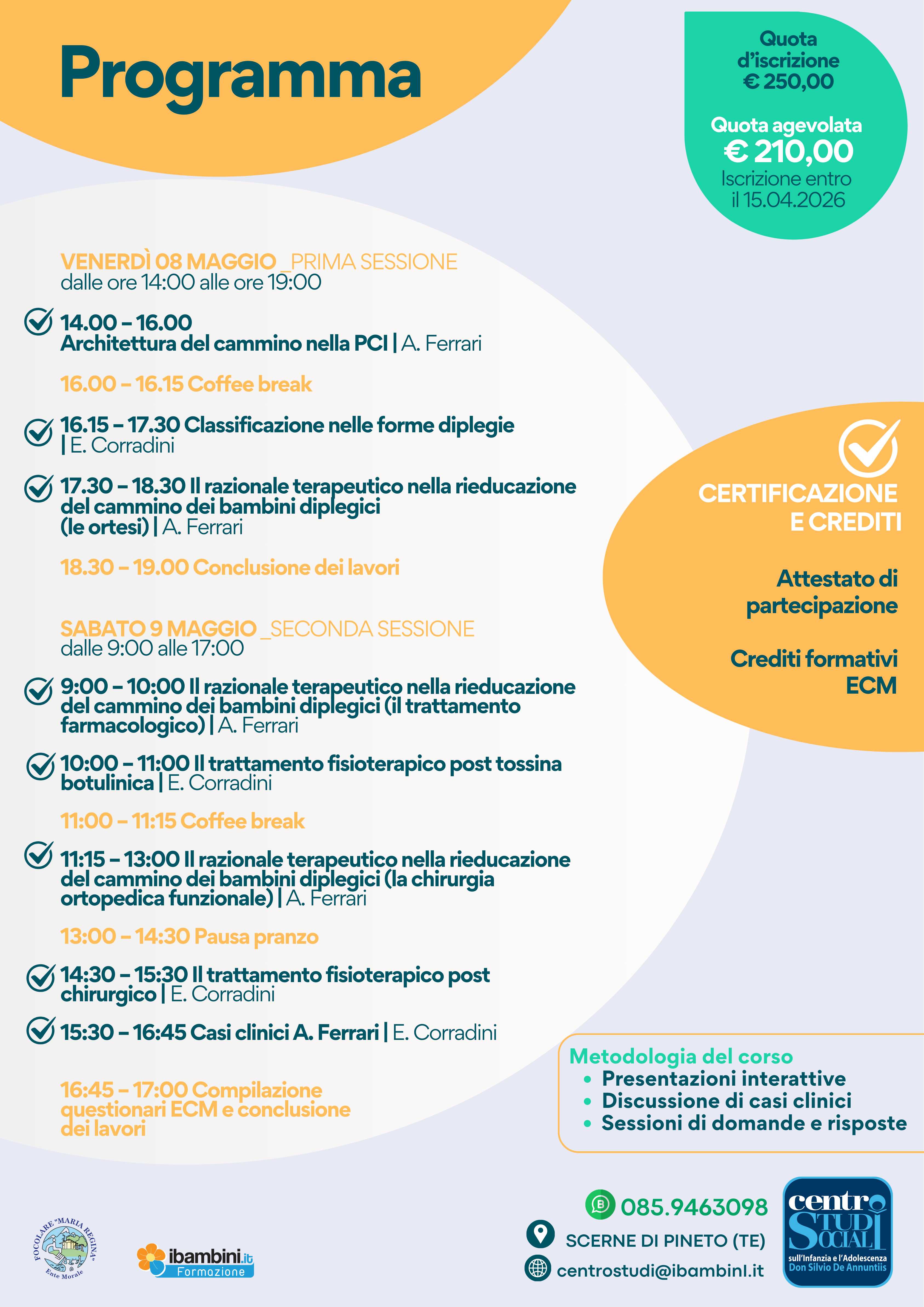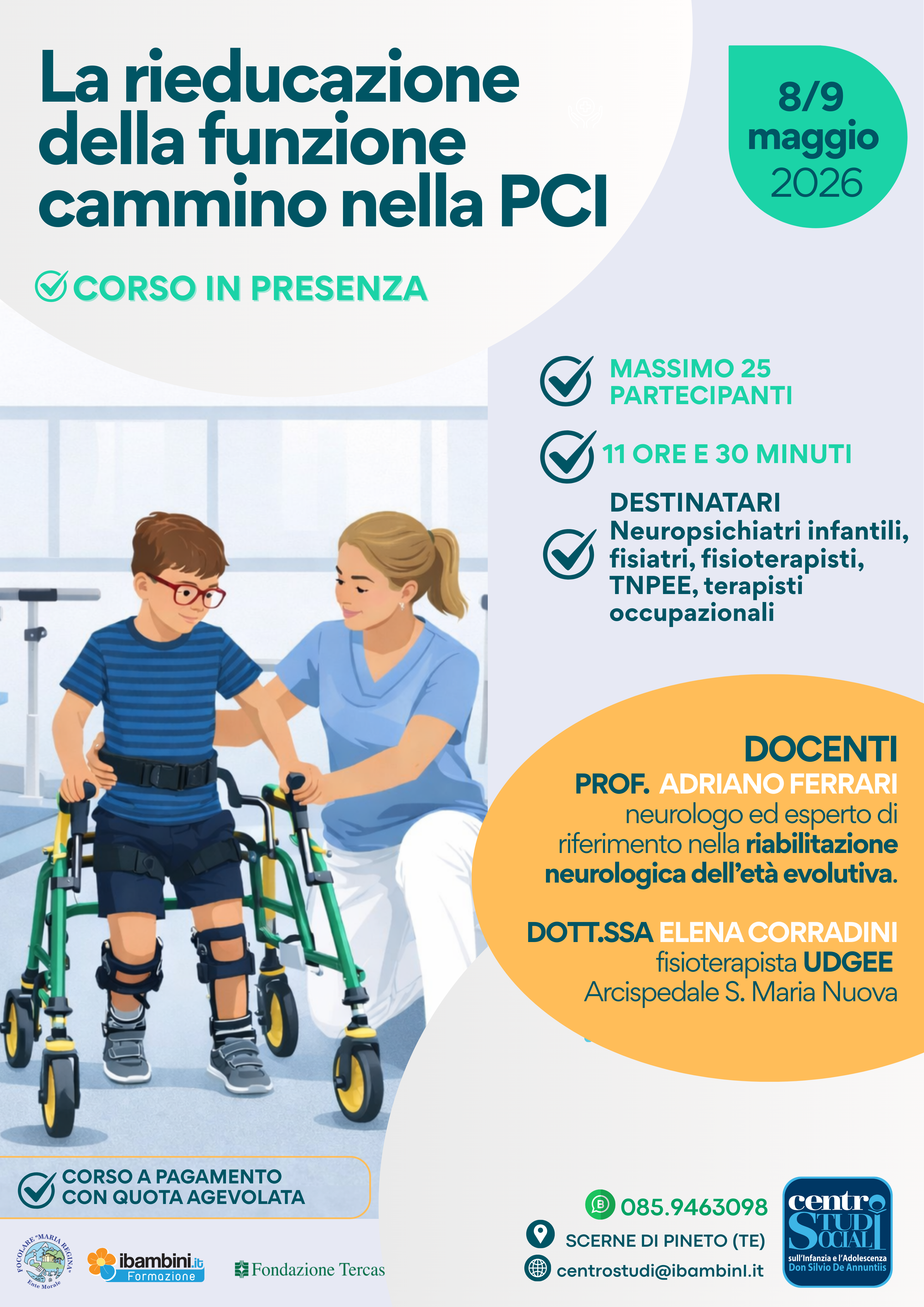 Questo corso vuole affrontare il problema del recupero del cammino nel bambino con Paralisi Cerebrale Infantile analizzando possibilità e limiti, percorsi e strumenti terapeutici.