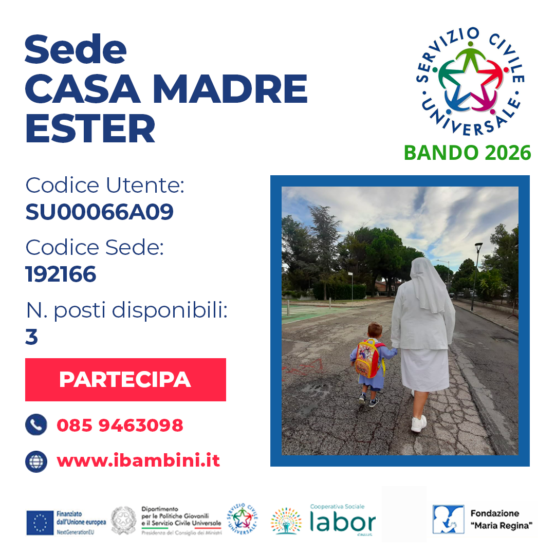 L'Associazione Focolare Maria Regina ETS e la Fondazione Maria Regina partecipano, in quanto enti di accoglienza, con il progetto "Passi insieme: Ascoltare, accompagnare, proteggere." al programma di Intervento: "S.C.U.D.I., - Sotenibilità, Cultura, Umanità; Cultura, Dialogo, Inclusione" promosso dall’ente Cooperativa LABOR.